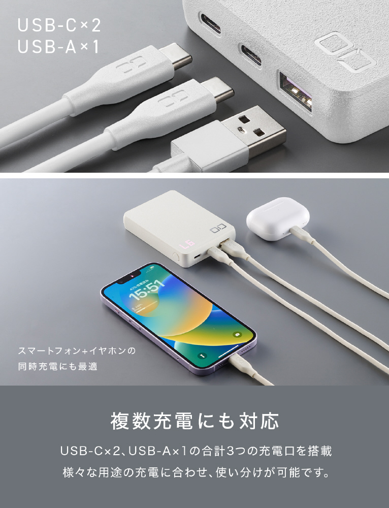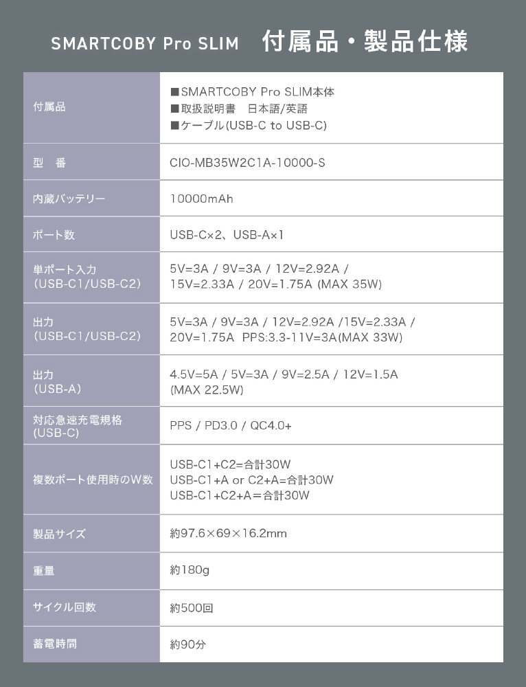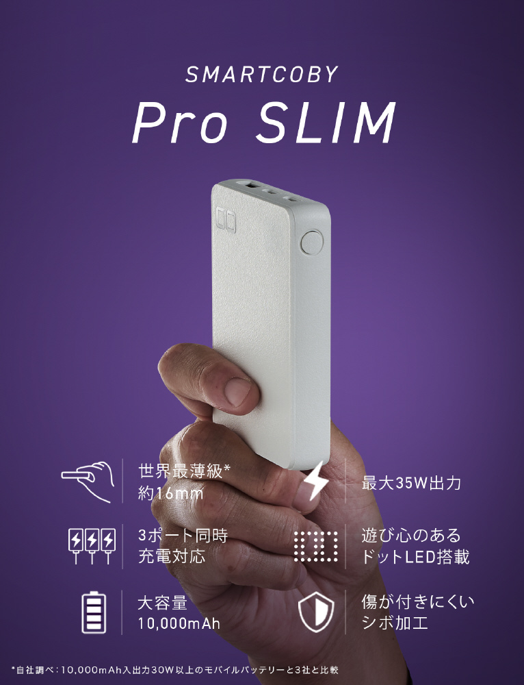 SMARTCOBY Pro SLIM 35W2C1A 10000mAh CIO-MB35W2C1A-10000-S-WH [USB Power Delivery対応 /3ポート] 【sof001】