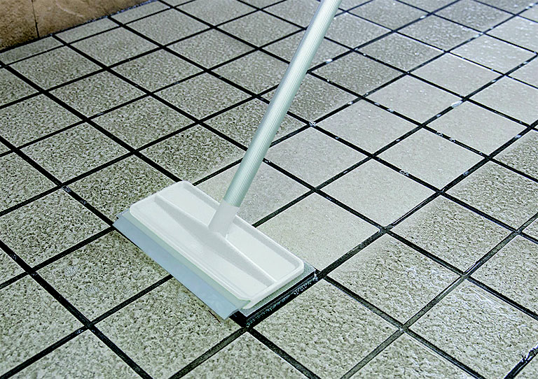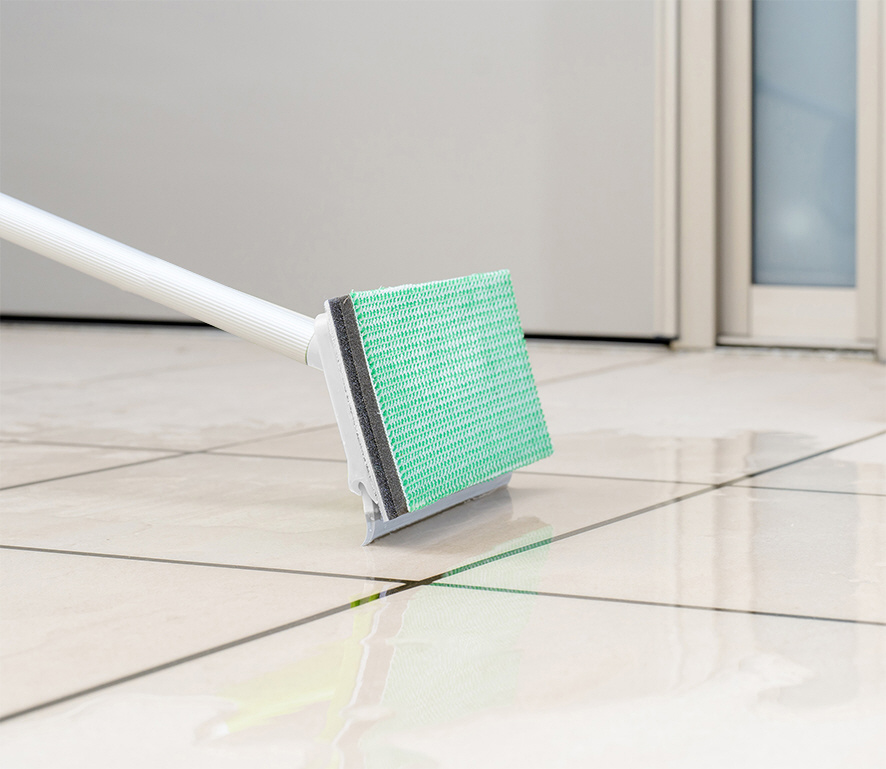 フロアに溜まった水をかき出すことができる水切りゴム付き。