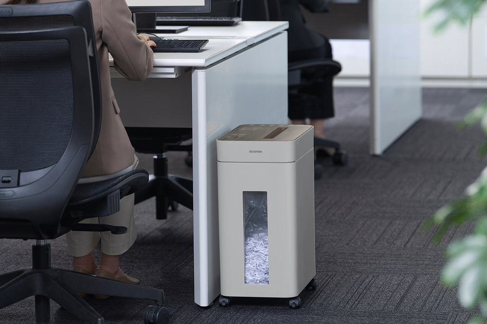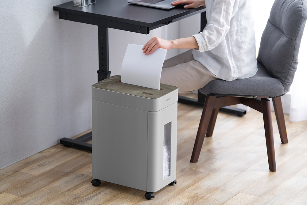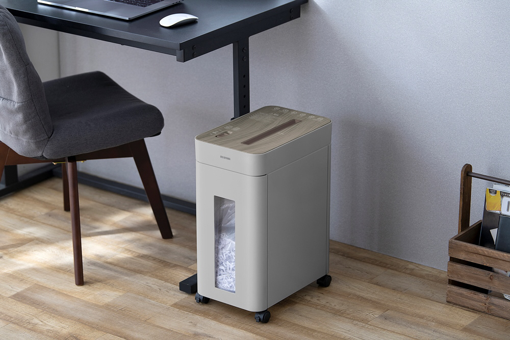 今まで小型のシュレッダーを使っていましたが、タンクがすぐに一杯になって、処理していました。こちらは当然タンクが大きい分、大きくなりましたが、イメージ的には高さが増して案外サイズ感は変わらない印象で、なんなら床置きになった分、移動も楽になり専有面積はほぼ変わらずタンクは増えていい事ずくめって感じです。