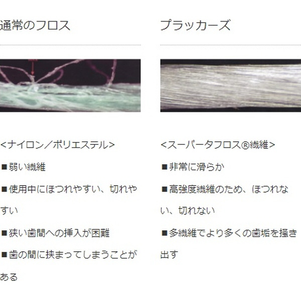 2本のフロスでプラーク除去効率アップ。ほつれにくい・切れにくい・伸びにくいデンタルフロス。ホルダー付きで歯と歯の間も簡単にしっかりケア出来ます。