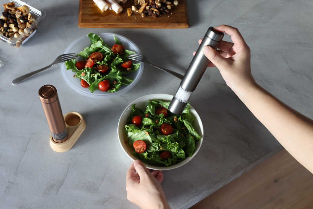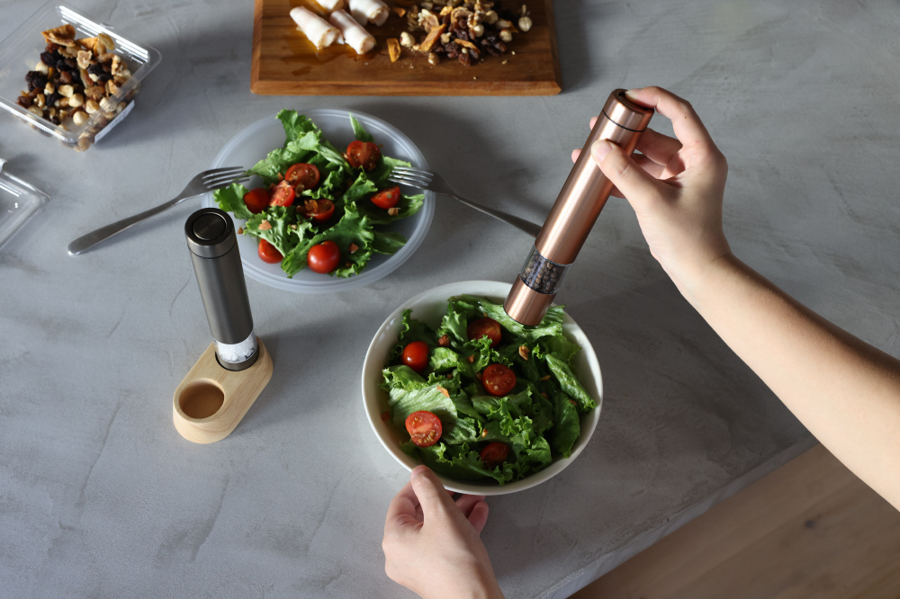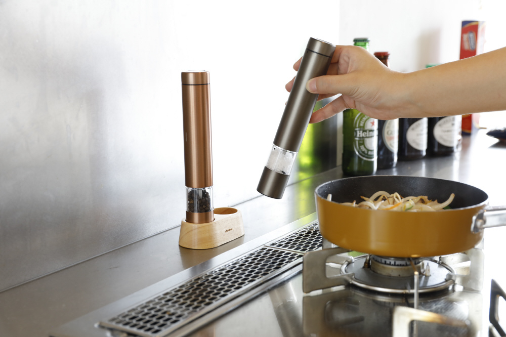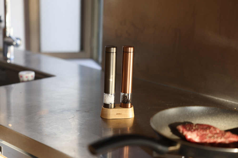 調理をしながら片手で使える電動式ミル。様々なスパイスに使いやすい2本セット。