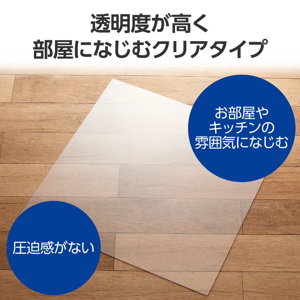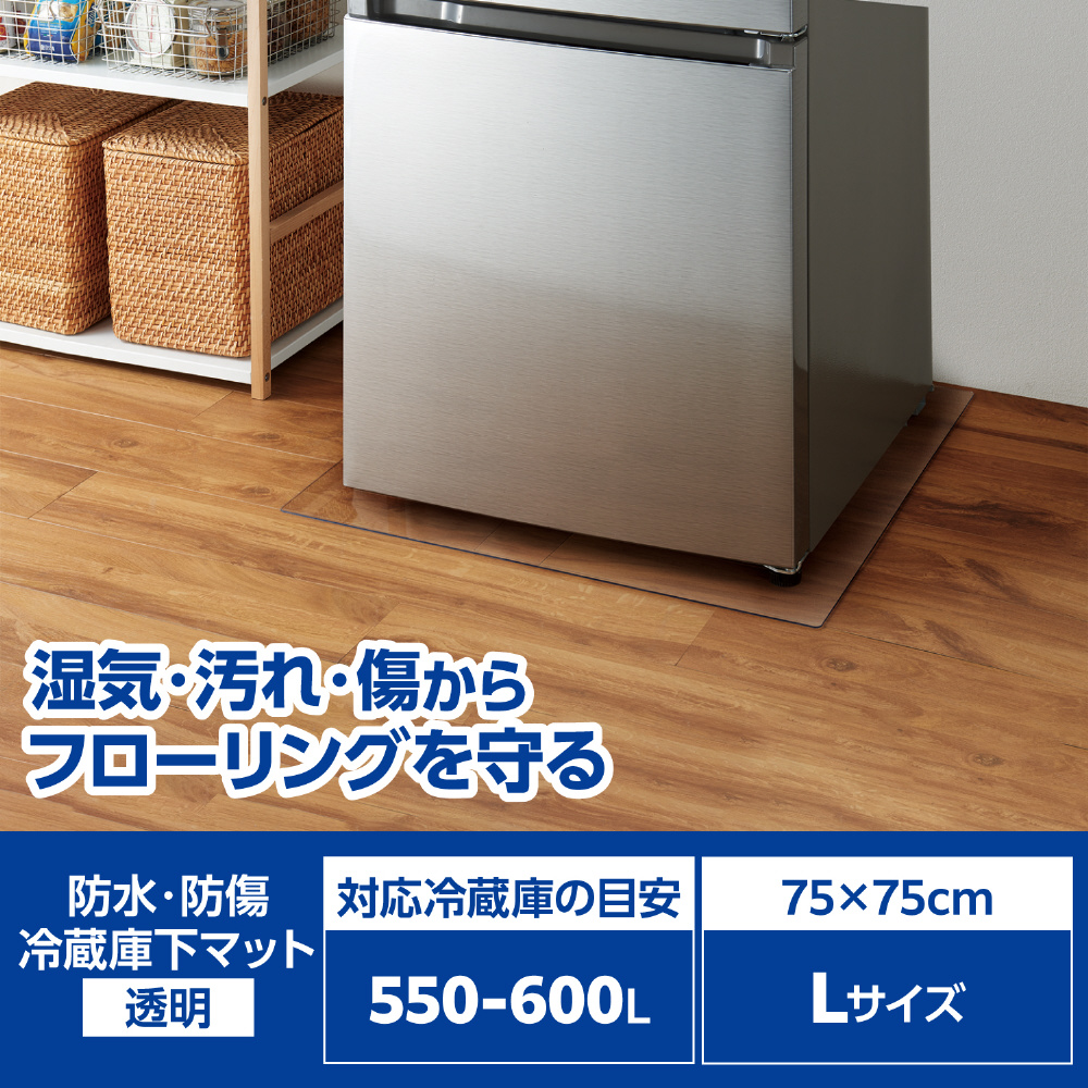 フローリングを湿気や汚れ、傷から守る、防水・防傷の冷蔵庫マットです。冷蔵庫を直接床に置いたときの傷やへこみ、シミなどのトラブルを防ぎ、きれいな状態をキープ。透明度が高いクリアタイプなのでお部屋やキッチンの雰囲気を邪魔しません。