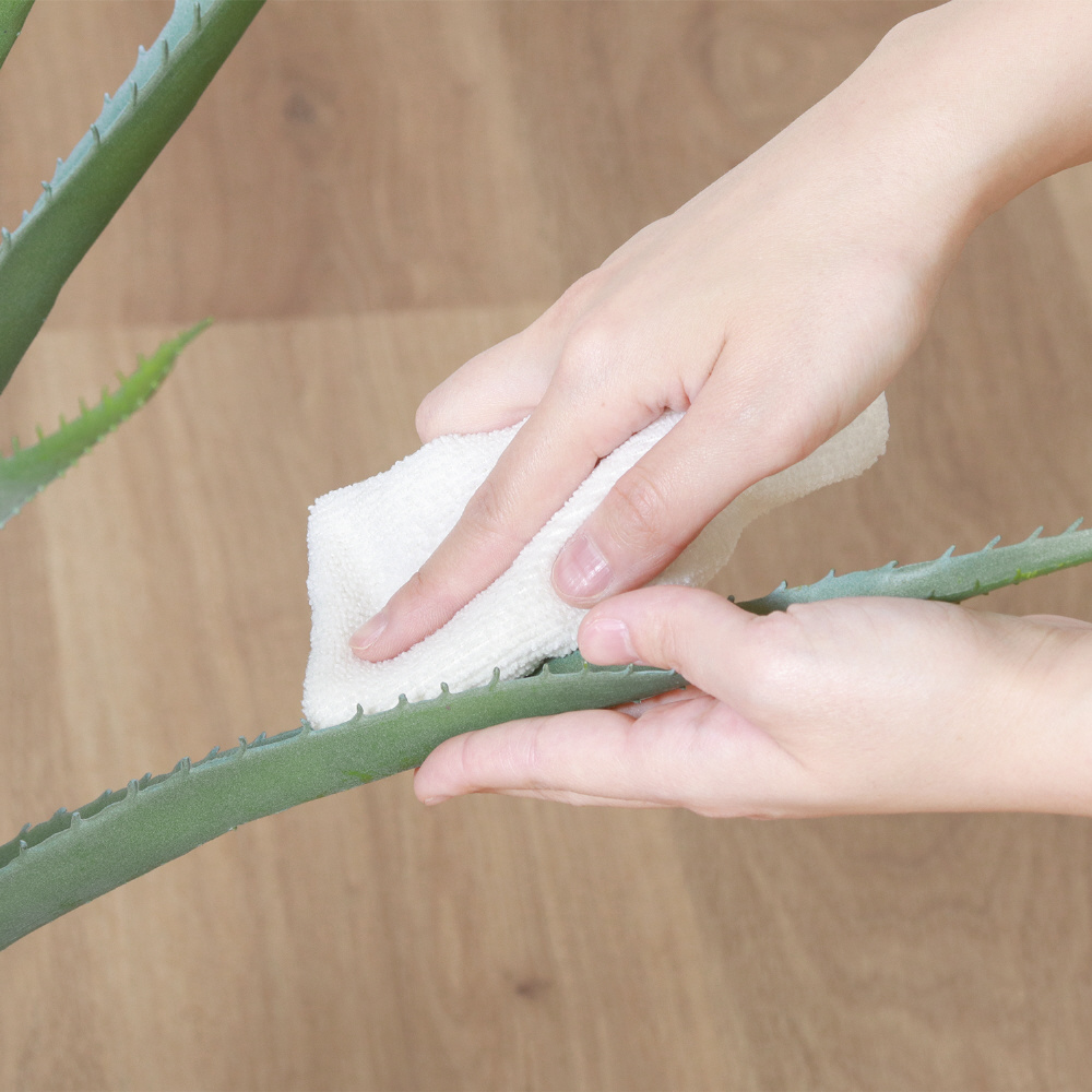 フェイクグリーンなので水やりなどの手入れを気にすることなく楽しめます。ときどき乾いたタオルでホコリをはたくだけでOK!