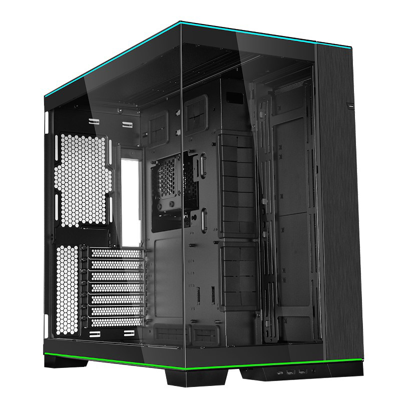 強化ガラス製のフロント・サイド両パネル+取り外し可能なフロントピラーの採用と、ケース上下に配置されたL字型のRGBストリップによって、内部コンポーネントをシームレスかつ鮮やかに表現できることが最大の魅力です。