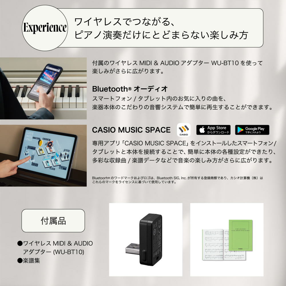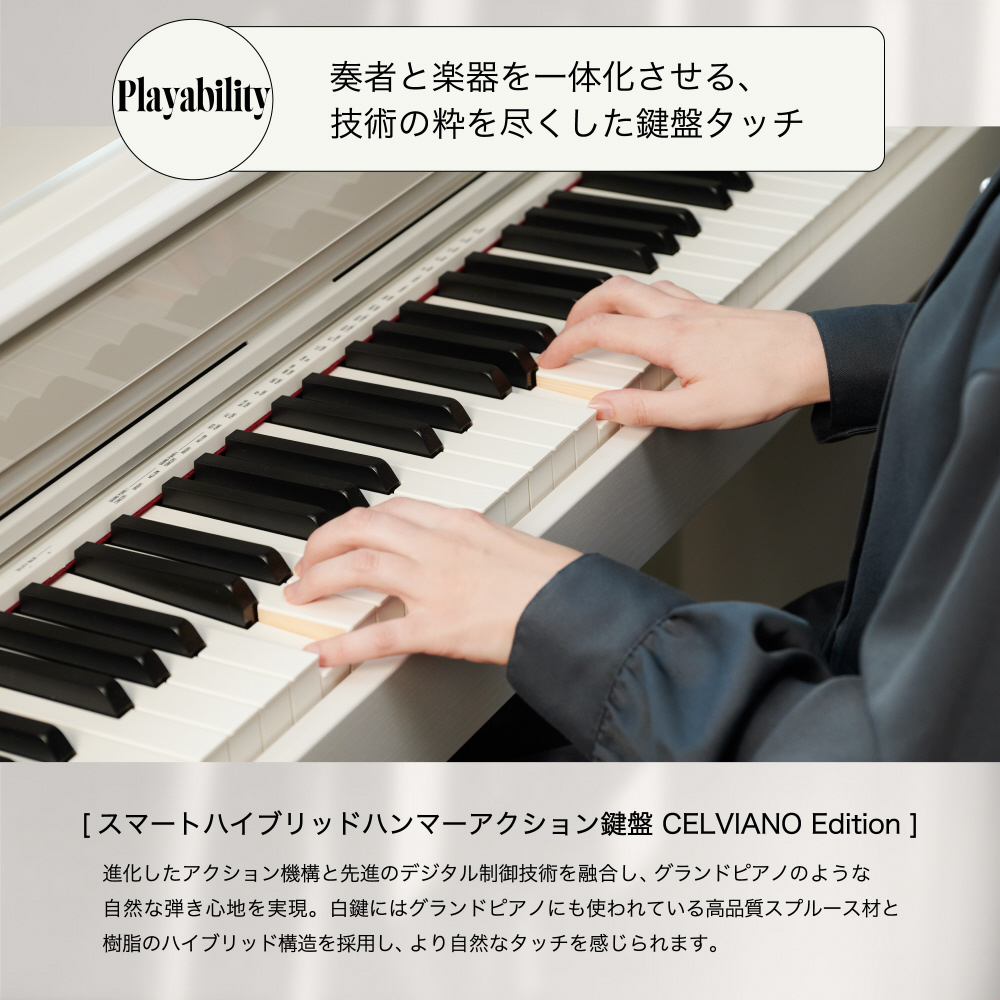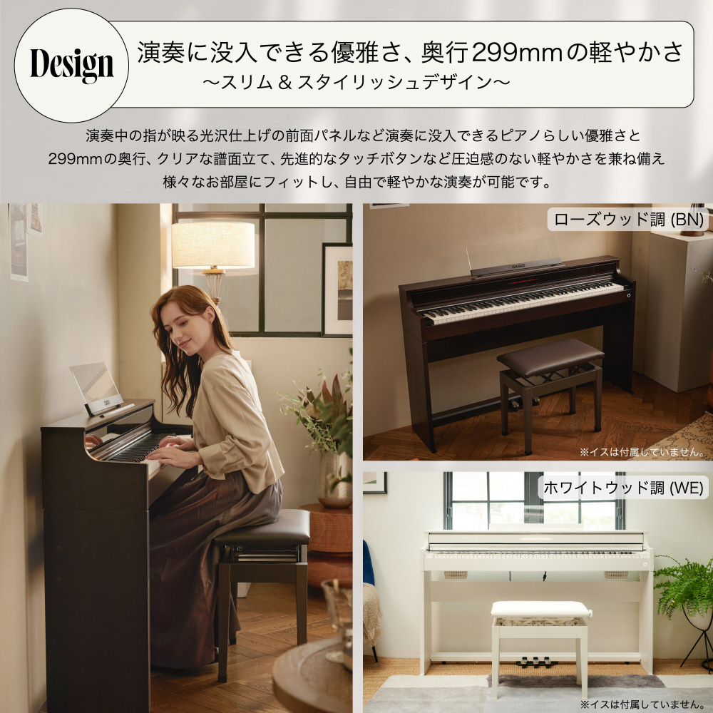本格的な楽器性能を備えながらも自分の部屋で気軽に弾けるスリム設計となっています。