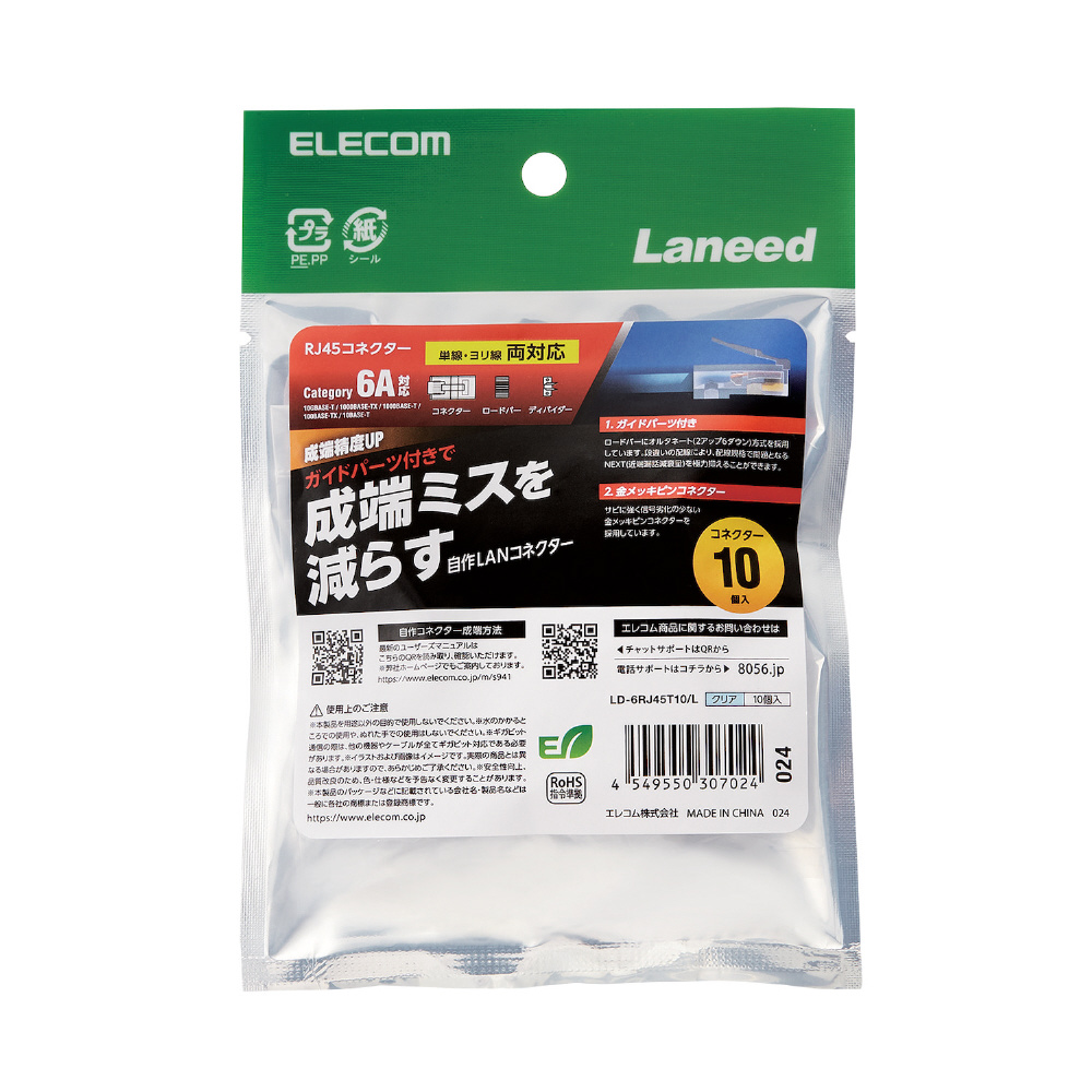 | 商品名 | 自作用RJ45コネクター ガイドパーツ付き [10個入] LD-6RJ45T10/L |