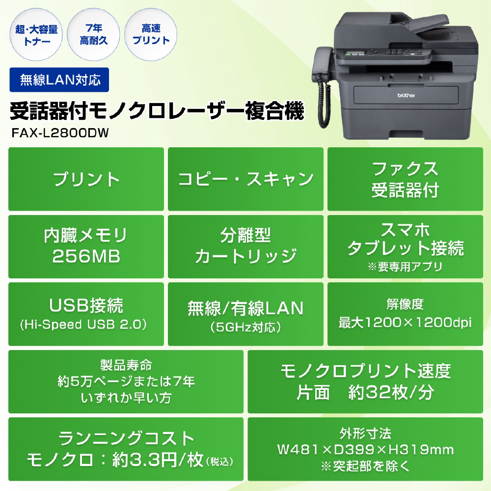 (FAX/無線・有線LAN/ADF/両面印刷)