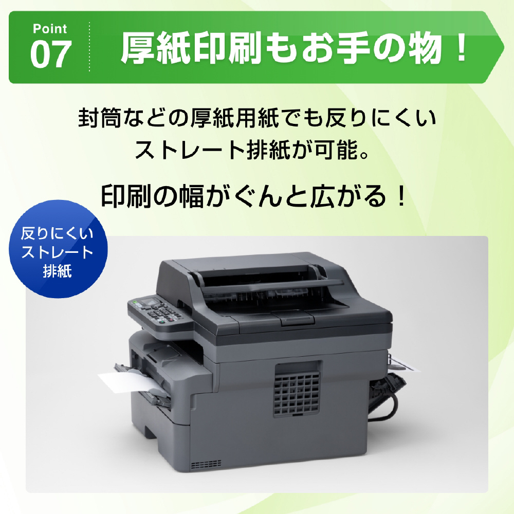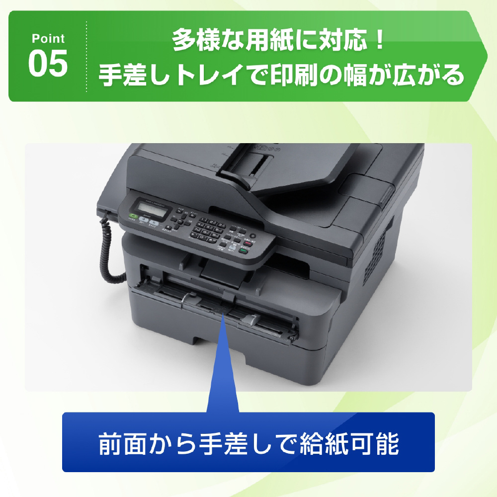 給紙・排紙・トナーの交換などの操作を前面で行うことができます。省スペース設計なので本体の場所をとりません。