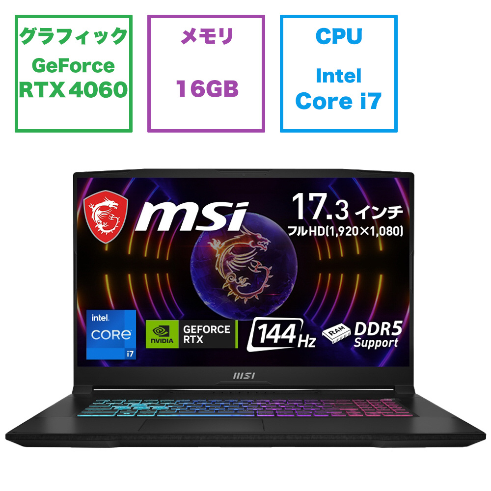 ゲーミングノートパソコン KATANA 17 B13V ブラック KATANA17-B13VFK-4334JP[RTX4060]