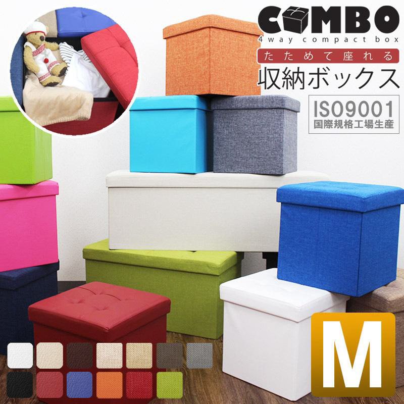 収納ボックスCOMBO 蓋つき オットマン Mサイズ ベージュ