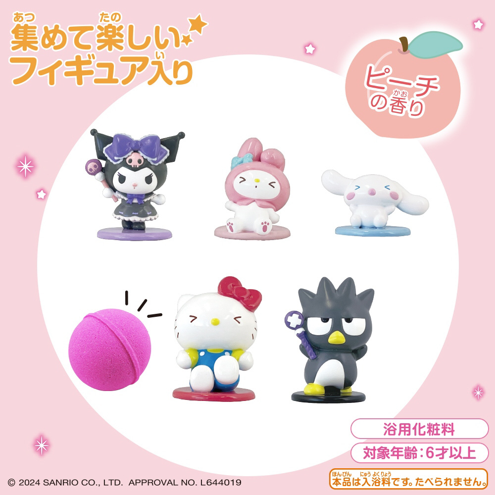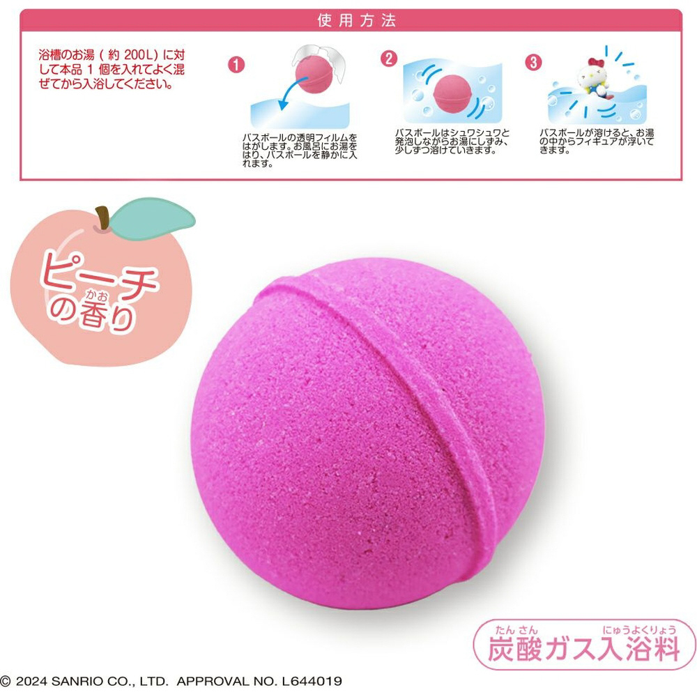 何が出るかはお楽しみ♪中のマスコットは全部で5種類!入浴料が溶けるとフィギュアが出てくるよ!!★ピーチの香り★※本品は入浴料です。たべられません。