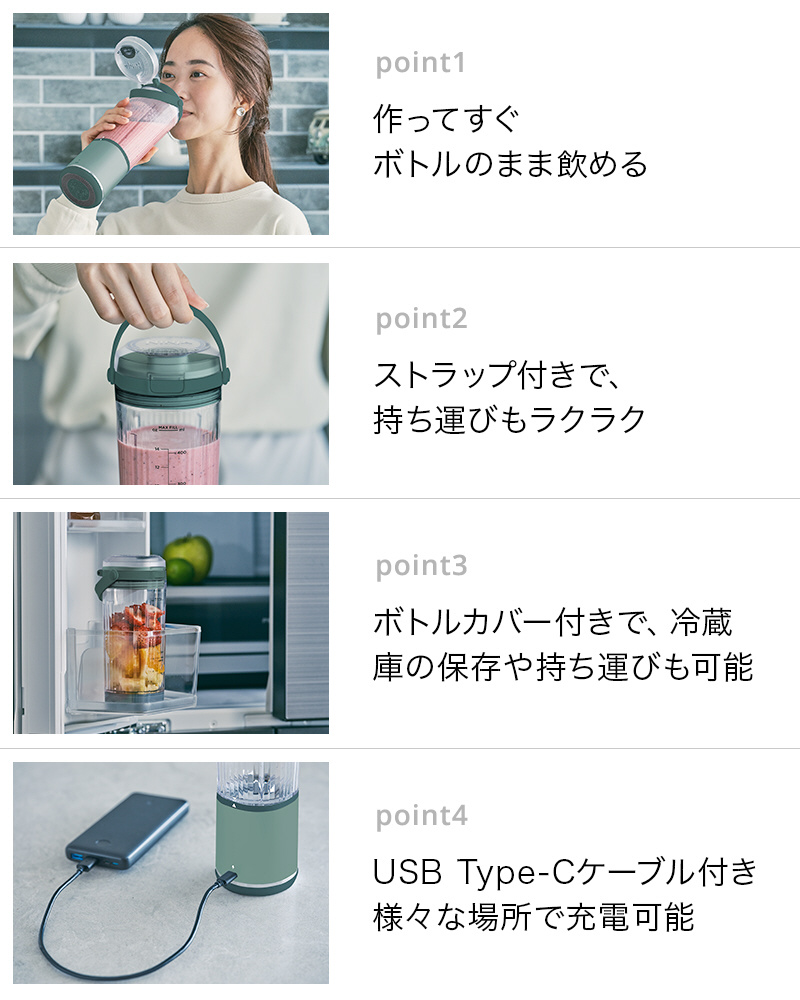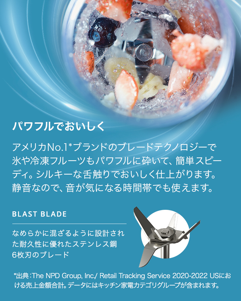 パワフルなかくはん力で、角氷や冷凍フルーツもしっかり砕く。静音パワフルなコードレスミキサー