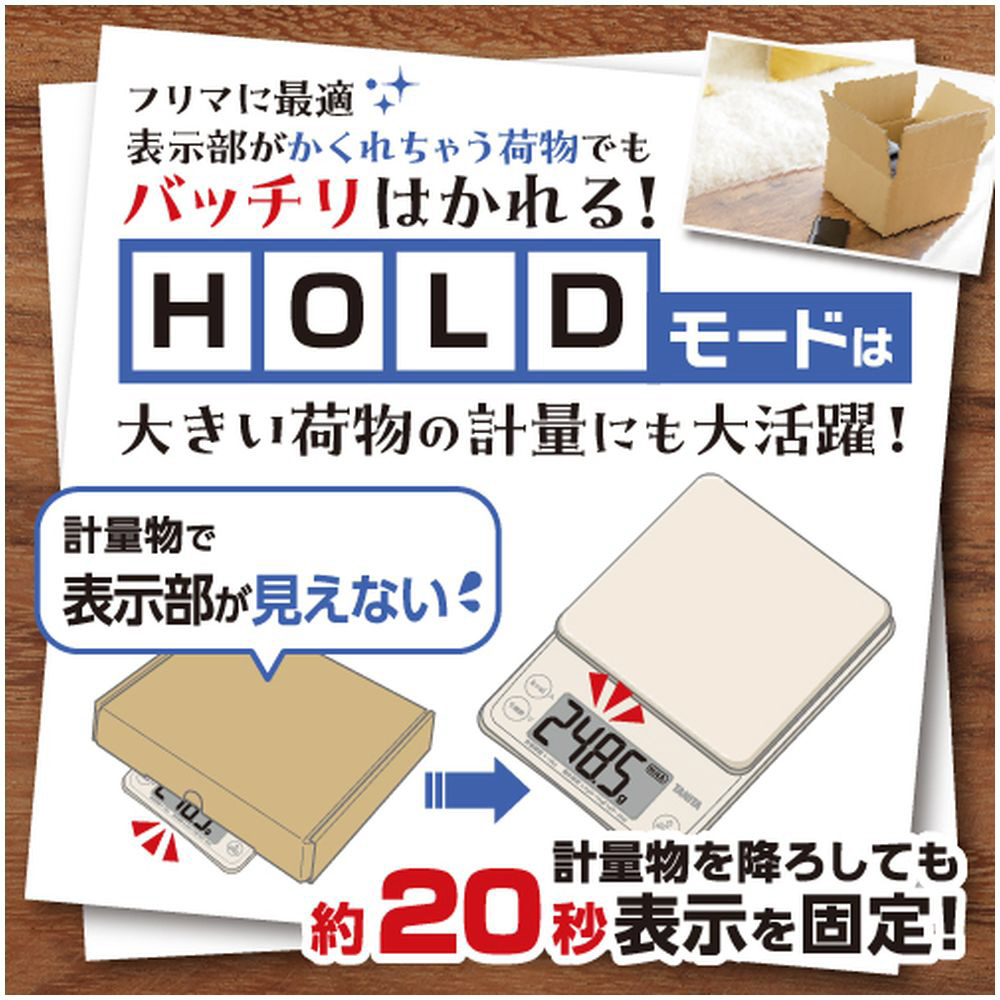 「HOLDモード」で、表示部が隠れても計量物の重さを確認できます。