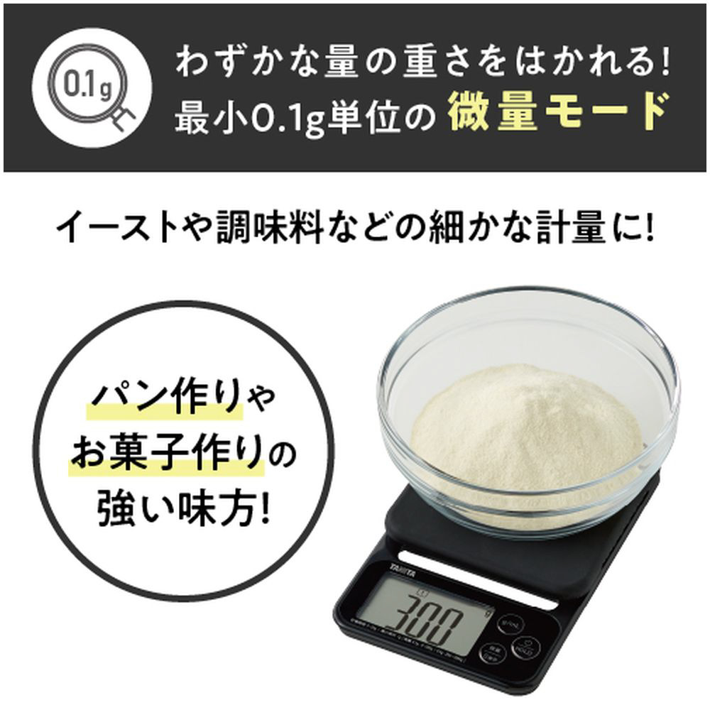 0.1g単位の微量計量で、ドライイーストや調味料も正確に計量できます。