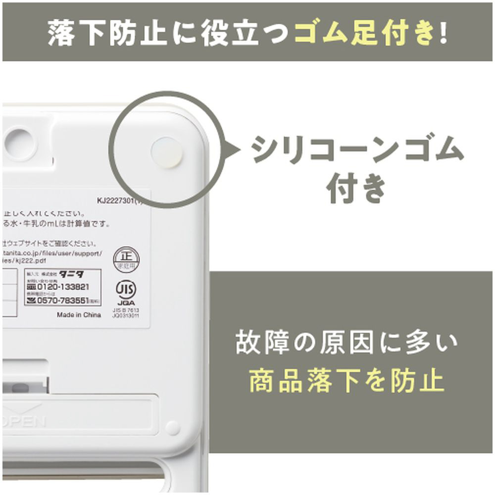 見やすい大型表示と、滑りにくいシリコーンゴムカバーで計量も安心です。