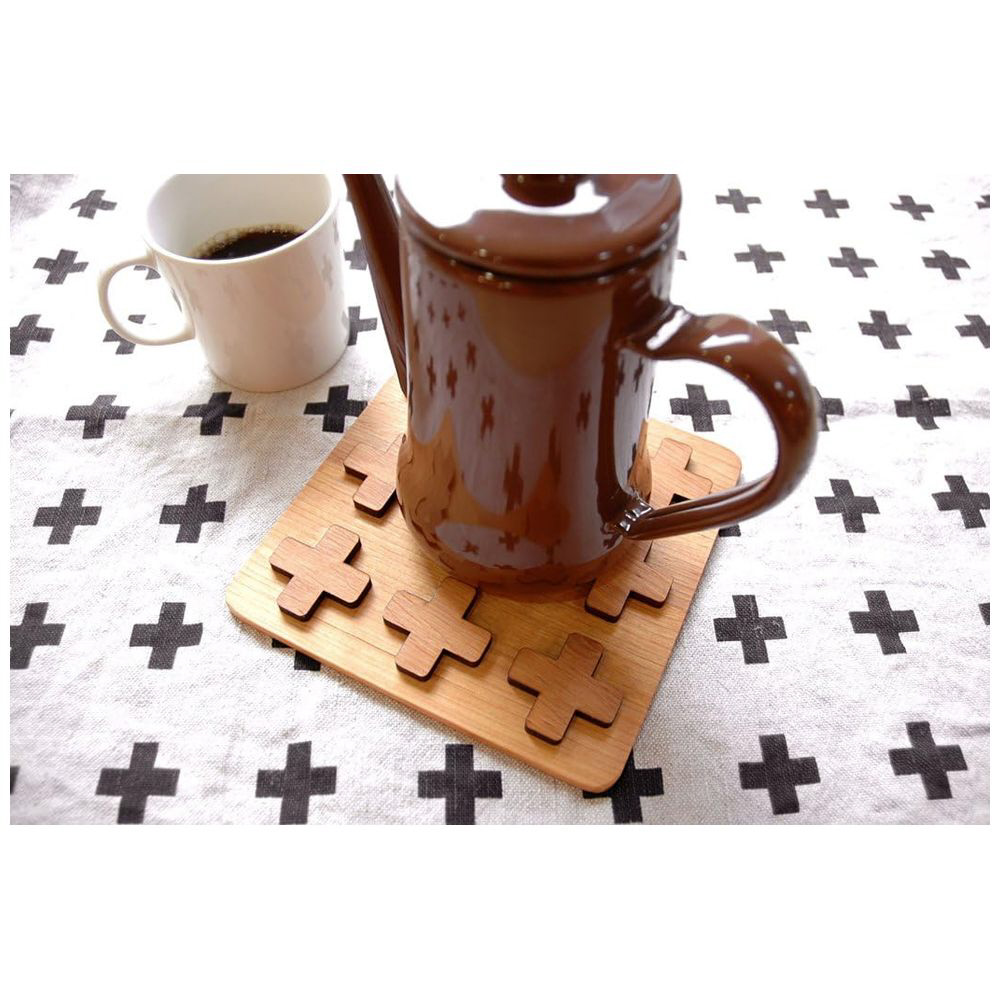 スカンジナビスクヘムスロイド社の木製クロスモチーフ鍋敷き。