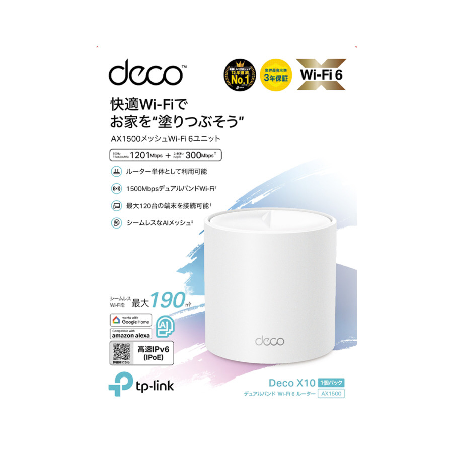 | 商品名 | Wi-Fiルーター 1201+300Mbps Deco X10 1P(1パック) [Wi-Fi 6(ax) /IPv6対応] |