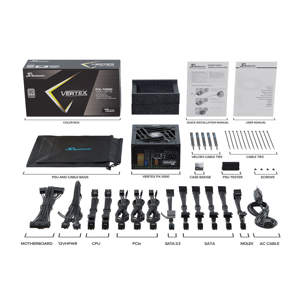 Seasonic製 80PLUS PLATINUM認証 ATX 3.0 対応 フルモジュラー ATX電源 VERTEXシリーズ 1000W