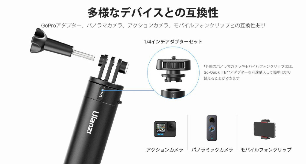 ・マルチデバイス互換性:アクションカメラアダプター、パノラマカメラ、アクションカメラ、および携帯電話クリップと互換性があります。