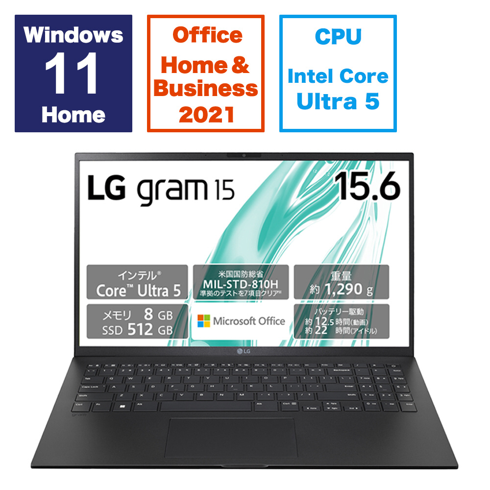 ノートパソコン LG gram 15Z90S-MR54J2 [15.6型 /Windows11 Home /intel Core Ultra 5 /メモリ:8GB /SSD:512GB /Office HomeandBusiness /英語版キーボード /2024年01月モデル]