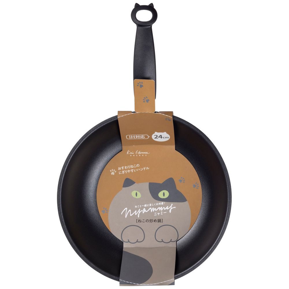 ●おすわりねこのにぎりやすいハンドルが特長の炒め鍋です。