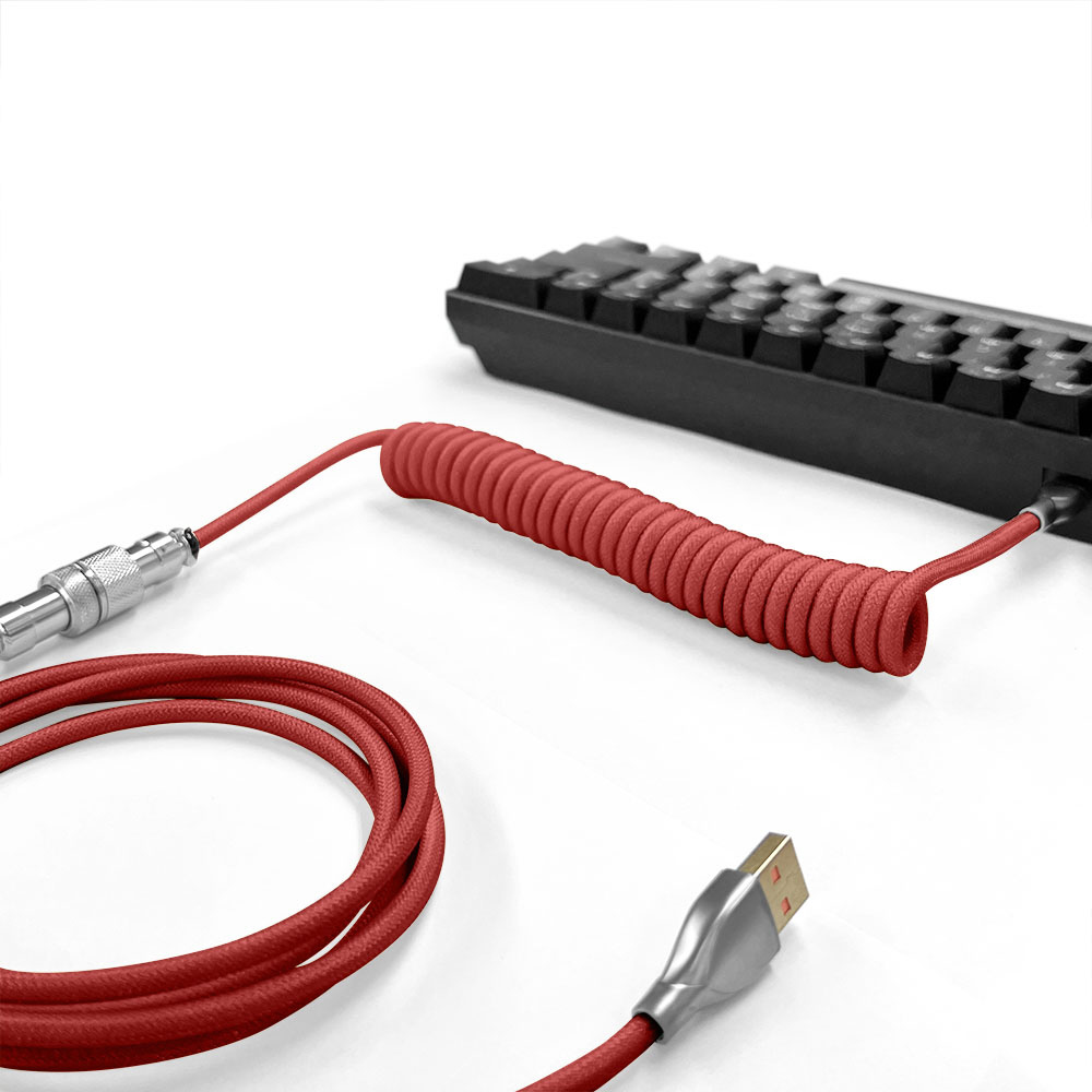伸縮性があり、耐久性に優れたキーボード用コイルケーブル。アビエイターコネクタ仕様なので自分の好みのオリジナルケーブルにカスタマイズできます。