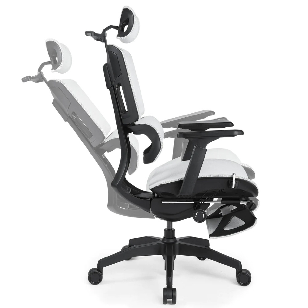 弾力性のある独立可動式ランバーサポートは、異なる姿勢や腰のカーブに合わせて自動的に調整し、常に腰椎(ようつい)が自然なS字カーブを保ち、椎骨(ついこつ)や肩にかかる力を軽減します。もちろんリクライニング時も調整されるので、気持ちよくフィットします。