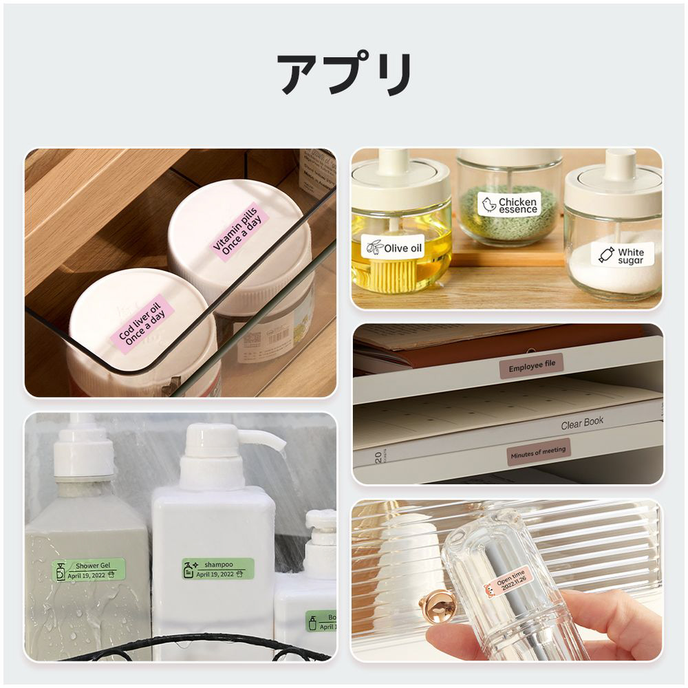 製品の名前や用途の仕分けシールもアイコンや色、模様の追加をアプリで簡単に可能です。