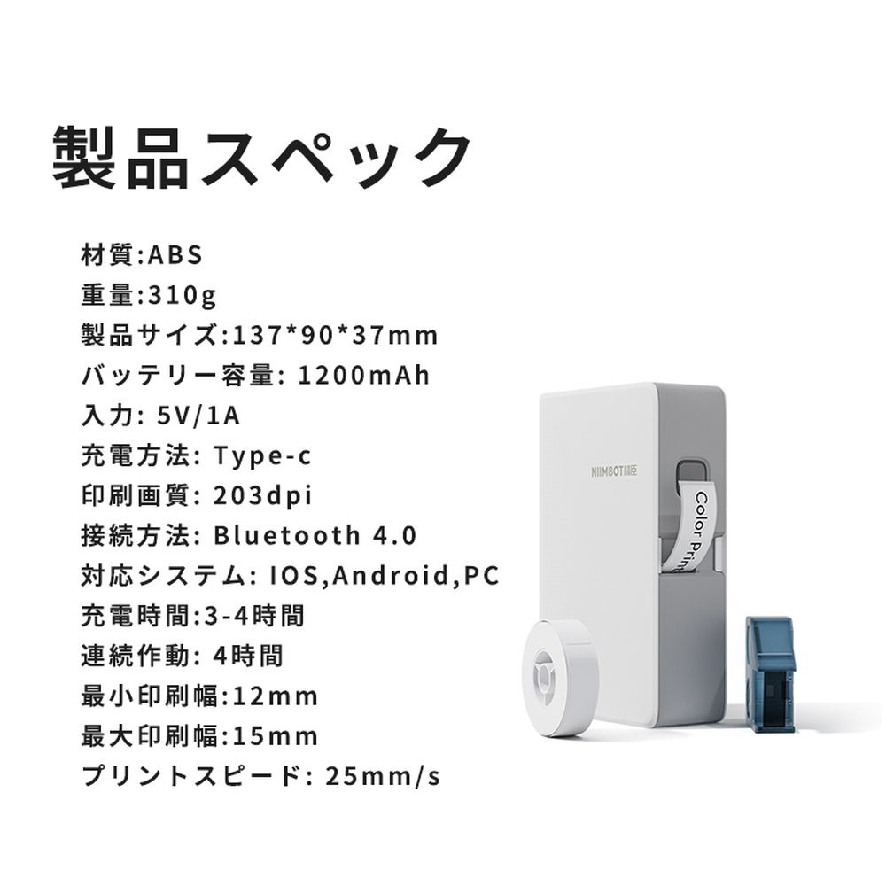 仕様3 | 専用アプリ:NIIMBOTアプリ |