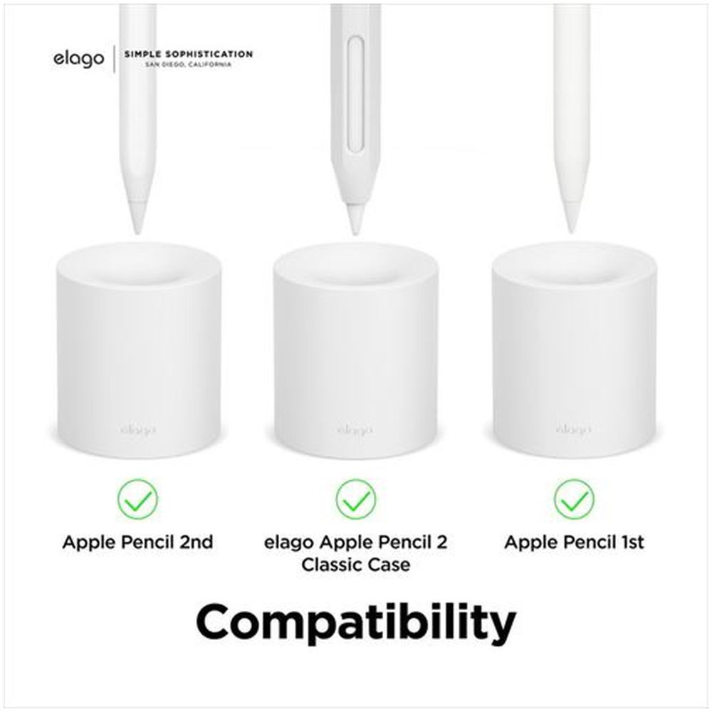 Apple Pencil第1世代、第2世代、および別売elago製Apple Pencil(第2世代用)CLASSIC CASEを装着したまま使用できます。