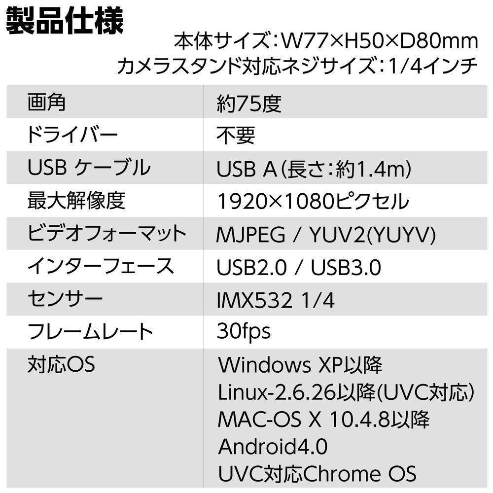 商品名 ウェブカメラ マイク内蔵 USB-A接続 (Chrome/Mac/Win) 91860 有線