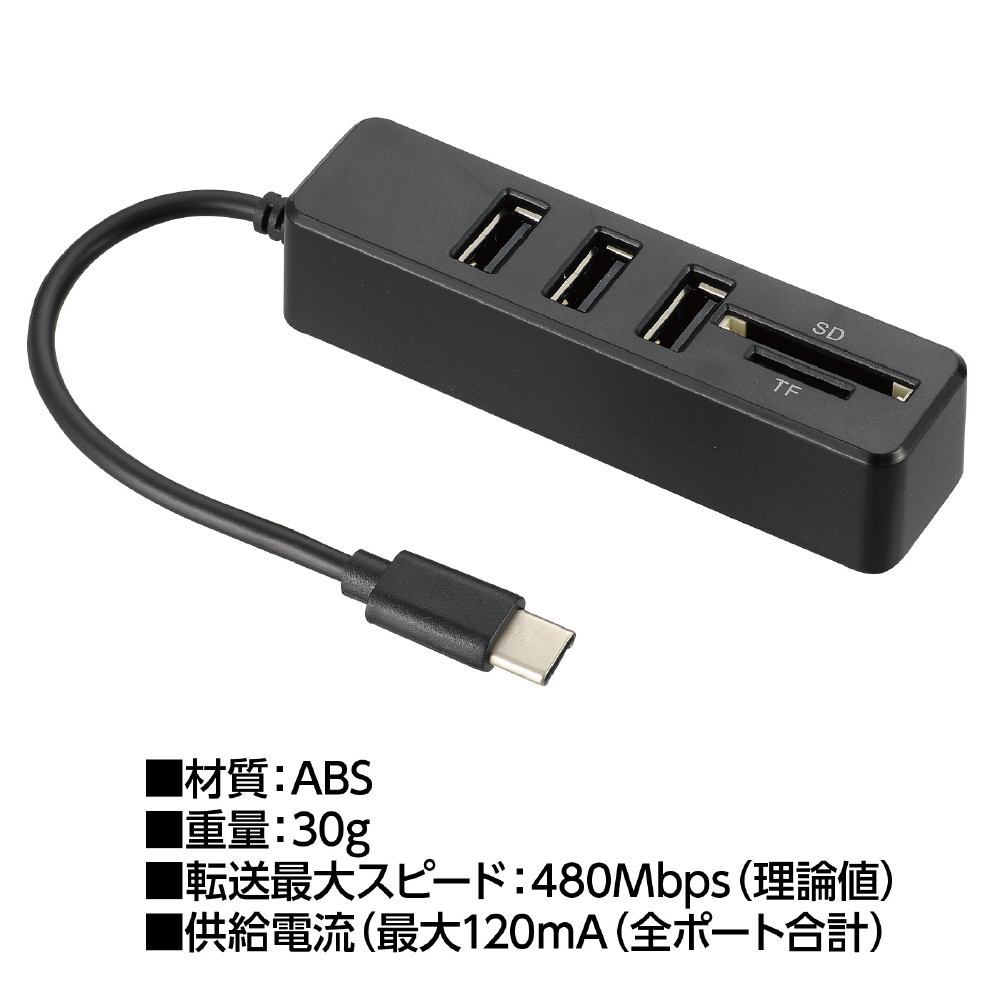 商品名 | [USB-C オス→メス カードスロットx2 / USB-Ax3]変換アダプタ 91865 |