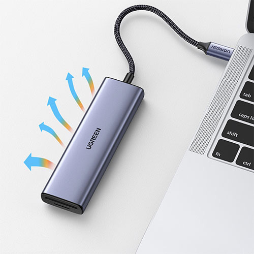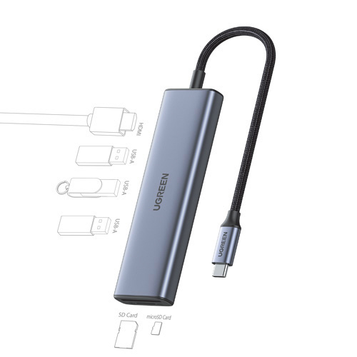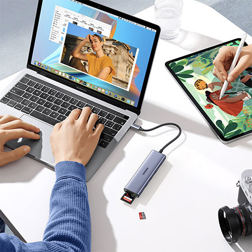 ノートパソコンの拡張ポートに満足していますか?UGREEN Revodok 6-in-1 USB-Cハブなら、ひとつのUSB-C端子から、HDMI、USB-A 3.0×3、SD/microSDカードリーダーなどに拡張します。最大5Gbpsの転送速度を実現し、デバイス間のデータ転送も簡単です!