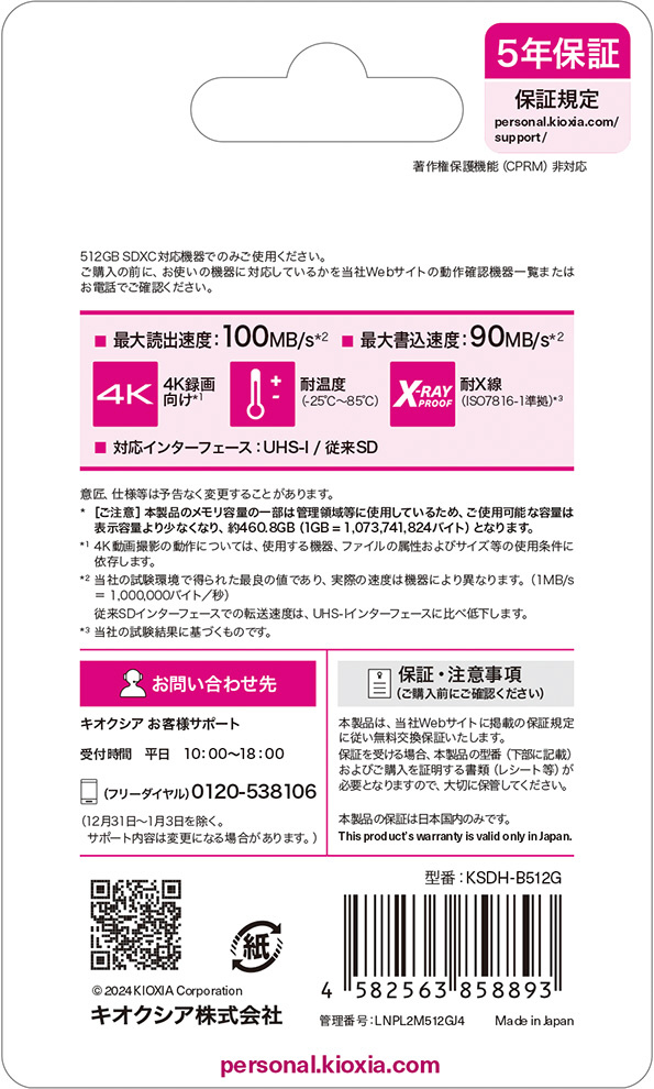 SDXCカード EXCERIA PLUS(エクセリアプラス) ピンク KSDH-B512G [Class10 /512GB]