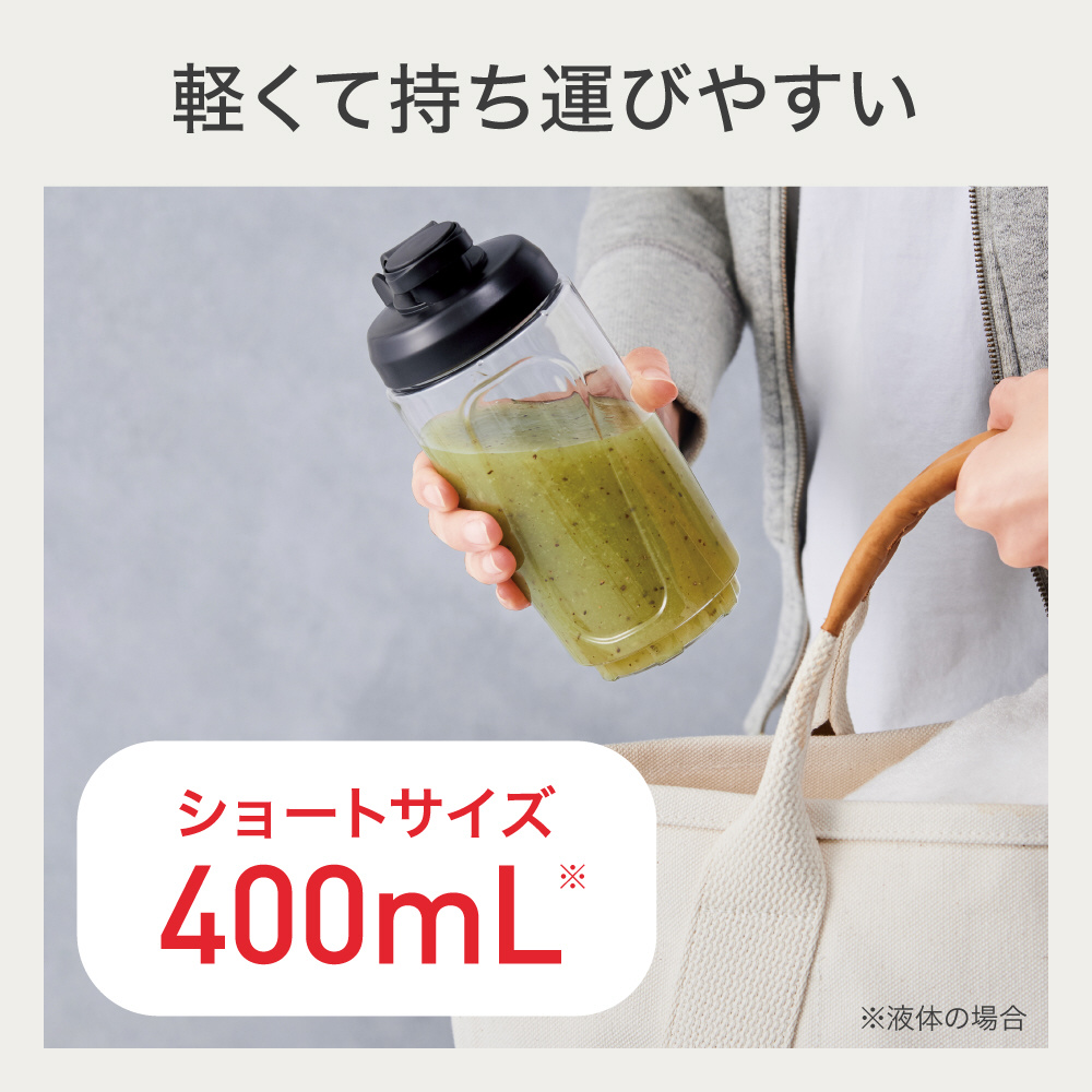 タンブラーは、耐久性、安全性、透明度に優れたトライタン素材を採用。トライタンとは、軽くて丈夫な上にガラスのような透明感がある樹脂素材で、環境ホルモンを含む化学物質をまったく使用しないため、食器やグラスに用いれば優れた安全性を発揮します。さらにコンパクトな 400mL サイズでバッグにもすっぽり収まり、タンブラーキャップ付きなので、出来立てのフレッシュなドリンクをそのまま持ち運べるのも便利です。