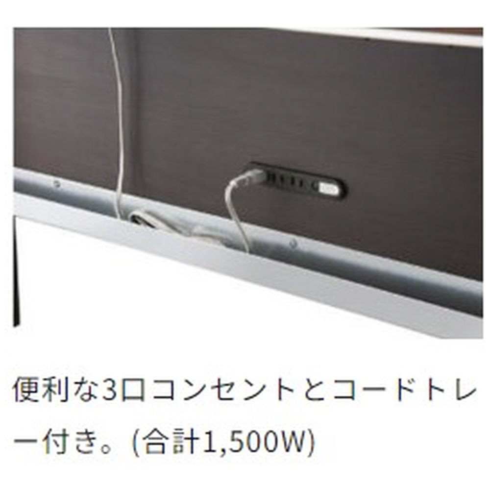 デスク背板下は余分なコードをまとめて置けるコードトレイと3口コンセント付きです。