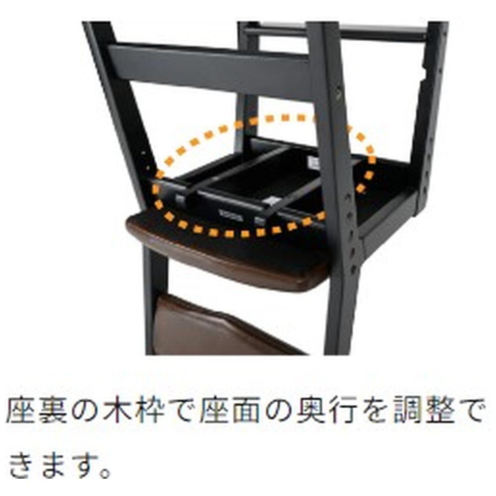 座裏の木枠で座面奥行を前後に3cm調整できます。