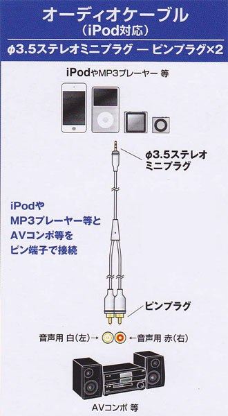 | 種別 | φ3.5ステレオミニプラグ ? ピンプラグ×2 |
