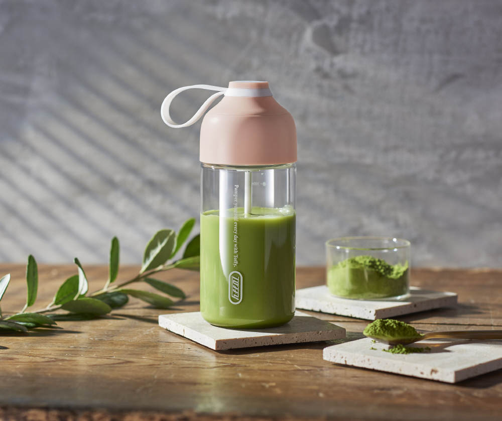 溶けにくい粉末もカンタンに混ざります。プロテインからスポーツドリンク、青汁や粉末茶までなんでもミキシング!