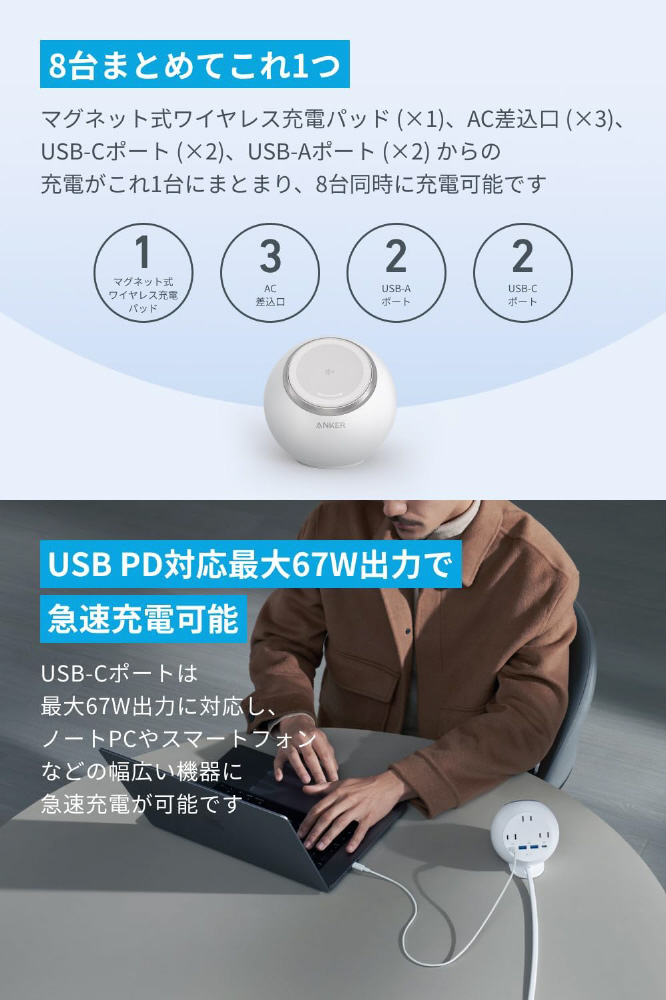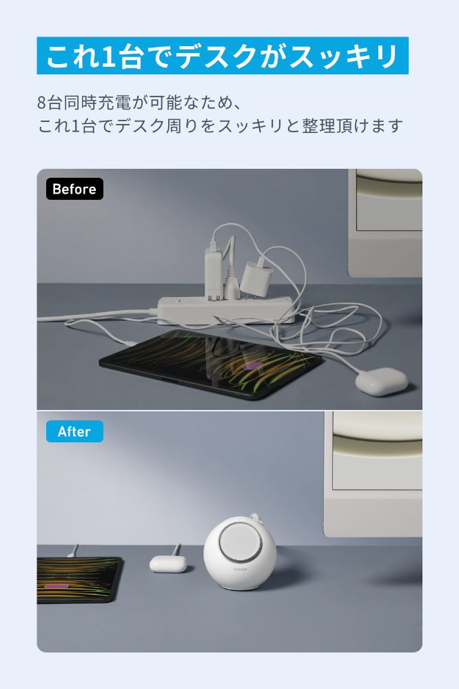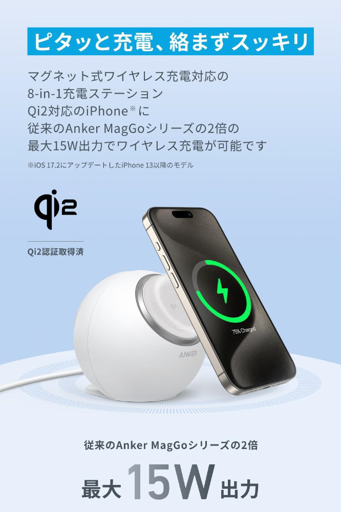 Anker MagGo Magnetic Charging Station (8-in-1) ホワイト A91C5N21 [マルチ型 /Qi2 15W対応]