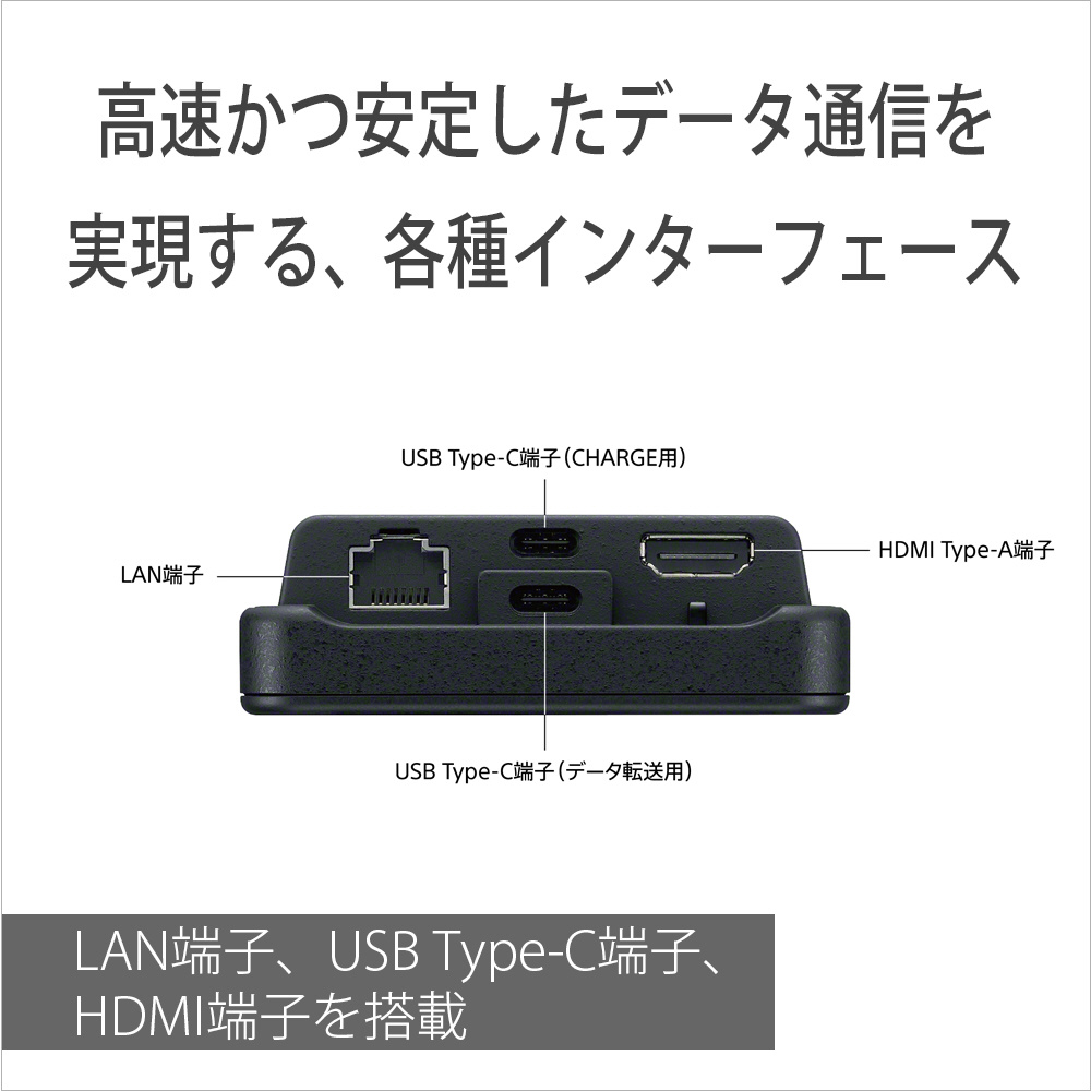 ■LAN端子、USB Type-C端子、HDMI端子を搭載(USB Type C端子は2つ搭載で、外部給電しながら、カメラからのデータ転送が可能)