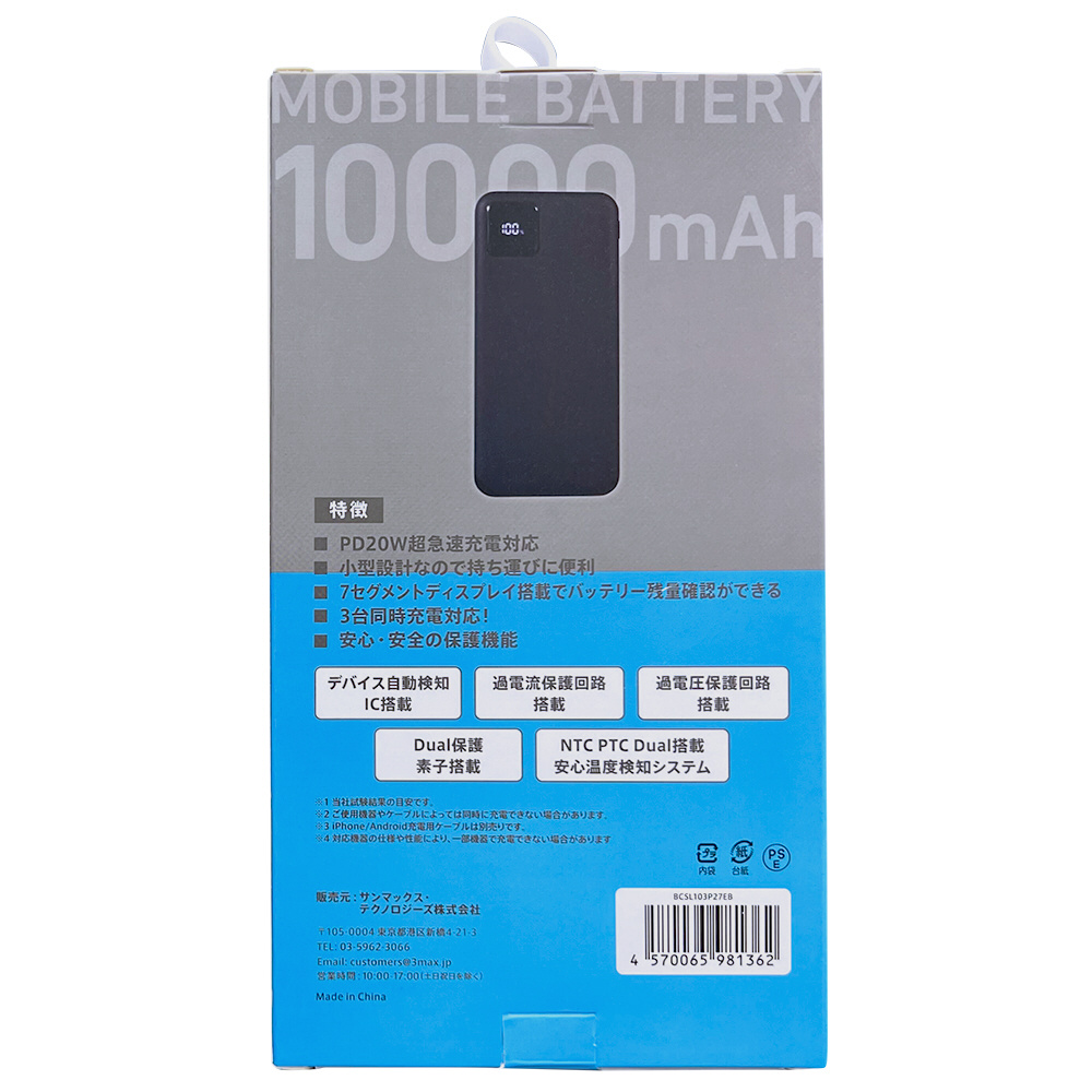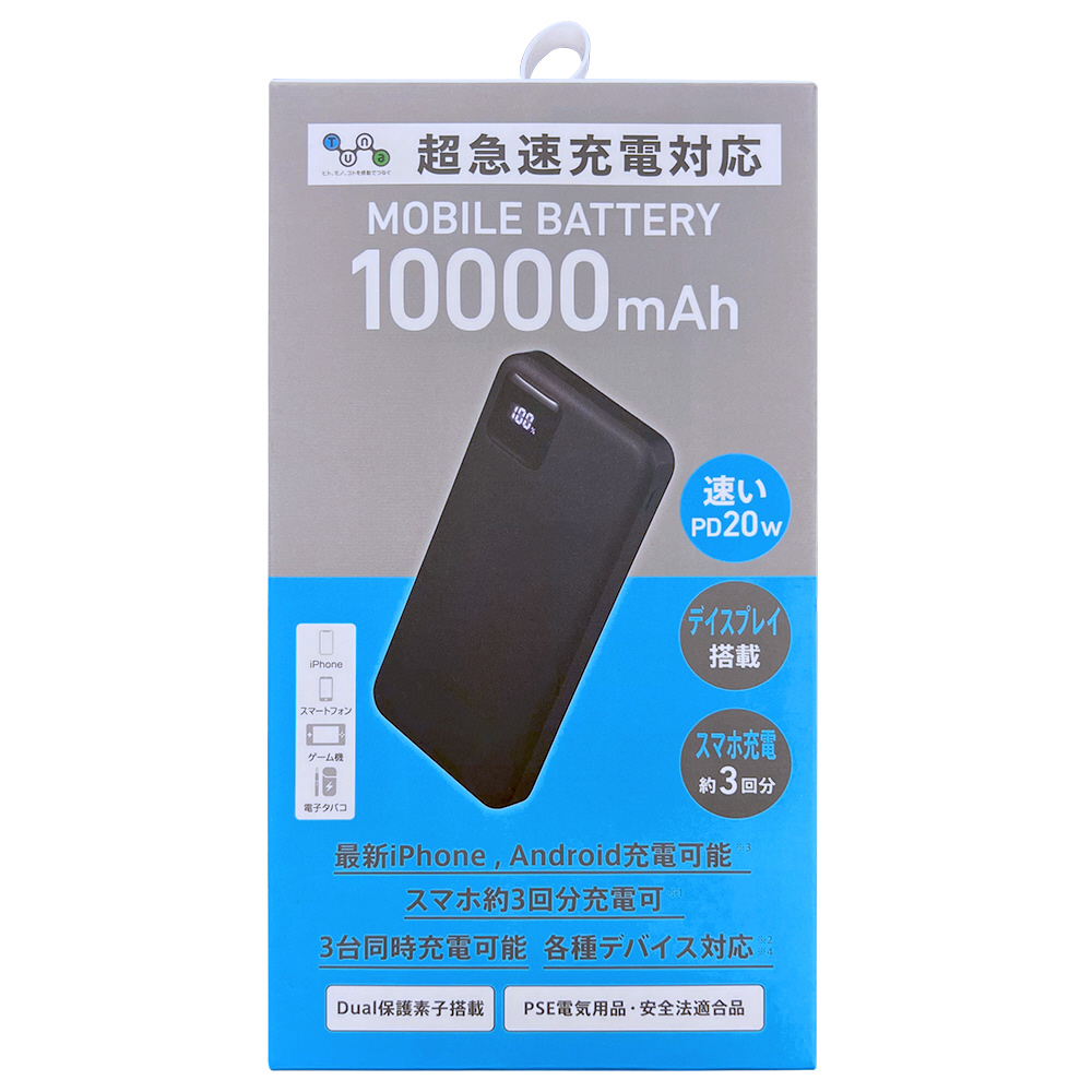 PD20W対応で超急速充電 モバイルバッテリー10000mAh 電池残量がわかる 3台同時に充電可能