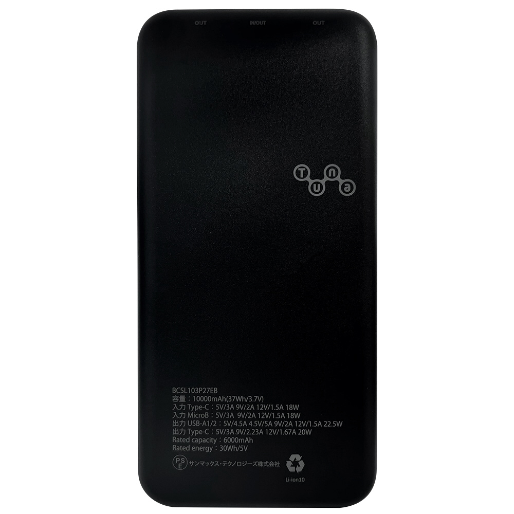 モバイルバッテリー10000mAh PD20W 7セグ表示付き 付属ケーブル:A to Type-C ブラック BCSL103P27EB [USB Power Delivery対応 /3ポート]