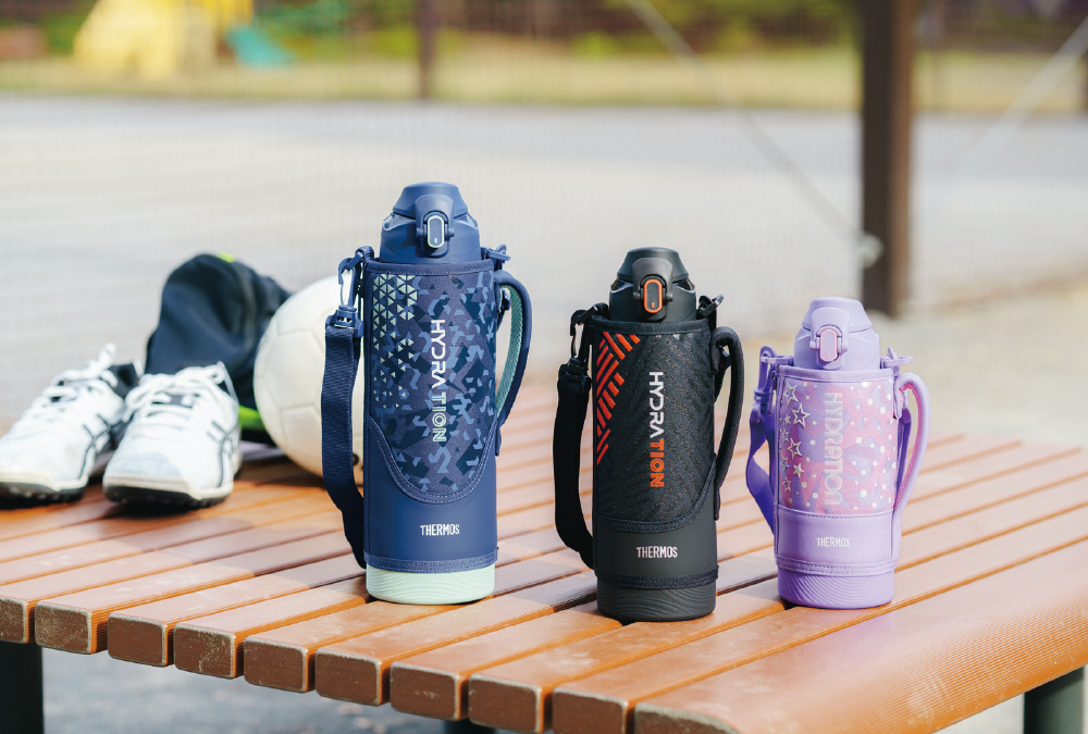 人気のスポーツボトルがリニューアル。両手で握ったときにすべりにくい加工を施したポーチや、大きく開いて飲みやすいキャップユニットなど使いやすさにこだわりました。