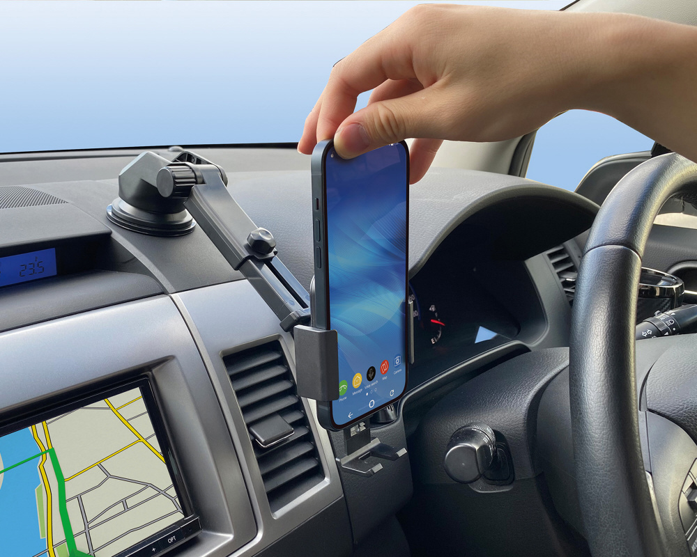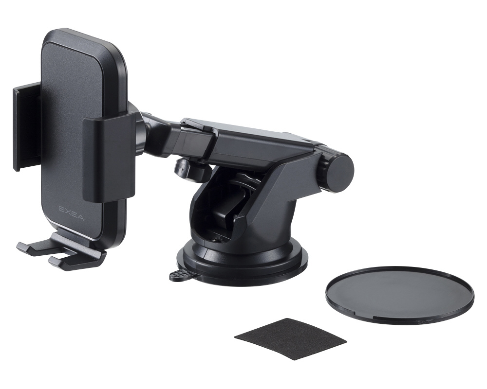 車内用品 EXEA(エクセア) スマホホルダー カラー:ブラック 吸盤取り付けタイプ 収納サイズ:幅60?96mm?厚さ22mm以下?重さ250gまで EC-246
