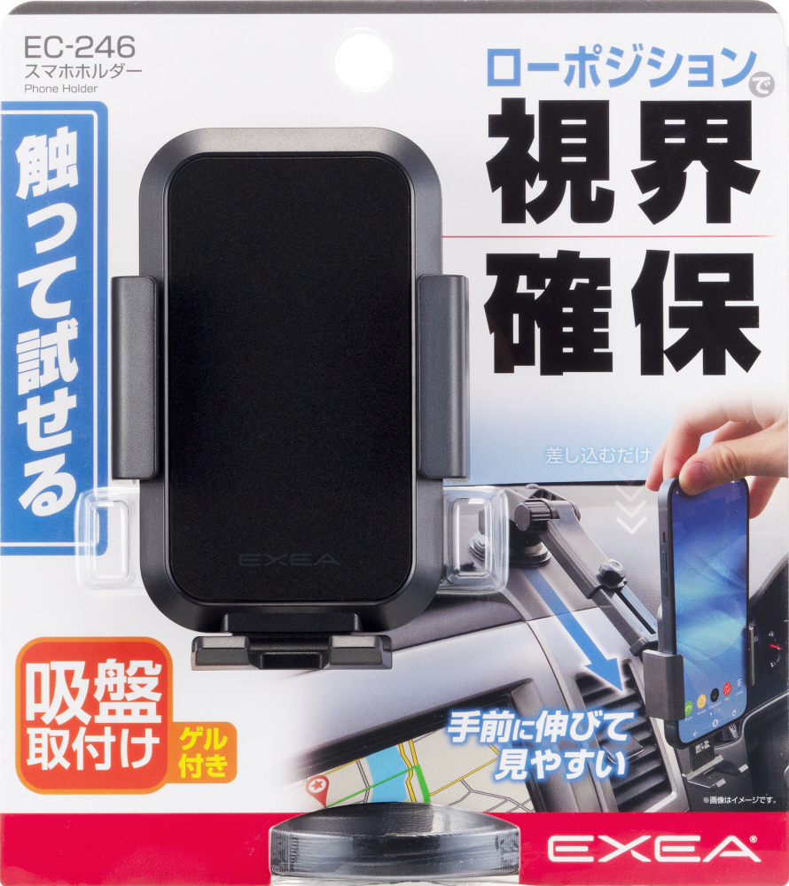 | 商品名 | 車内用品 EXEA(エクセア) スマホホルダー カラー:ブラック 吸盤取り付けタイプ 収納サイズ:幅60?96mm?厚さ22mm以下?重さ250gまで EC-246 |