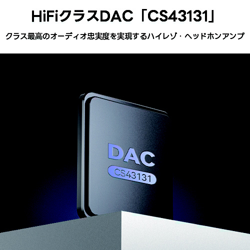 シーラス・ロジック社のマスターHiFi DACチップであるCS43131は、DSD256をネイティブにデコードし、高いバッテリー電力効率でクラス最高のオーディオ忠実度を実現するハイレゾ・ヘッドホンアンプを内蔵しています。