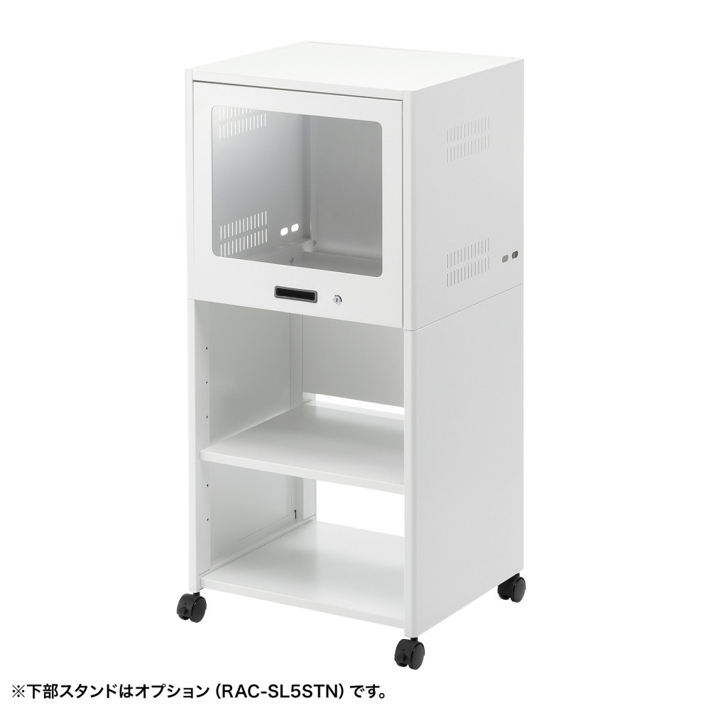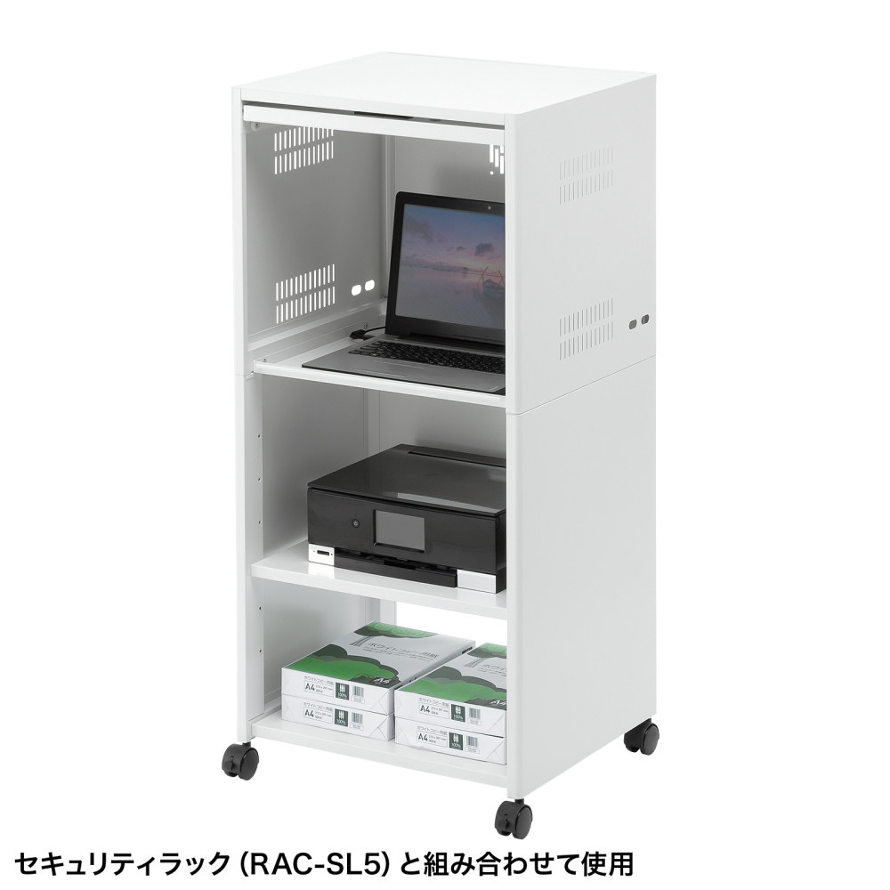 RAC-SL5と組み合わせて使用できる。セキュリティラック用スタンド・小。