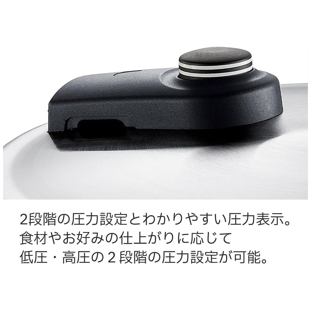 食材やお好みの仕上がりに応じて低圧・高圧の2段階の圧力設定が可能。