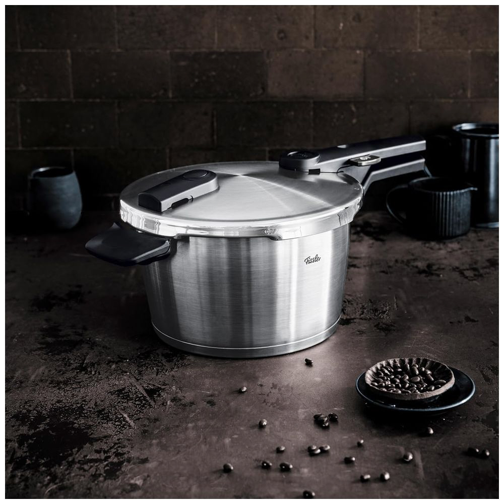 蒸気が少なく音も静かなフィスラーの圧力鍋 ビタクイック プレミアムと、健康的な料理が時短で簡単に、しかも安心・安全、そして省エネの圧力調理の世界へ。